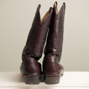 These awesome Dan Post western cowboy boots are handcrafted with quality materials. They are a men's size 11 in used condition. There is significant wear on the bottom and some scuffs on the leather. Please review pictures carefully before purchase! These are made with brown leather with a slight reddish undertone and feature nice stitching design around the shaft of the boot.