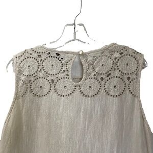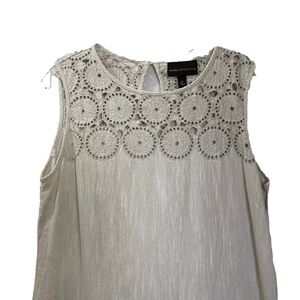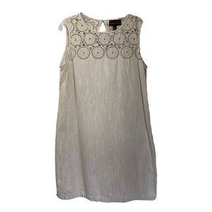 DANA BUCHMAN Cream Linen Crochet Sleeveless Shift Dress Boho Coastal S/M