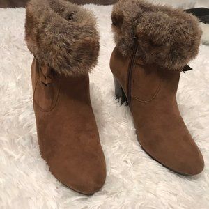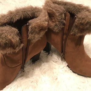 DANA BUCHMAN Brown Suede Faux Fur Fashion Ankle Boots SIZE US 6.5 Good condition some threading missing inside zipper area shown in photos