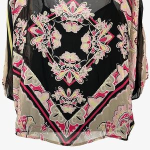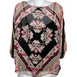 DANA BUCHMAN Oversized Top Black Pink Dolman Sleeve Lined Flowy Top Shirt sz M