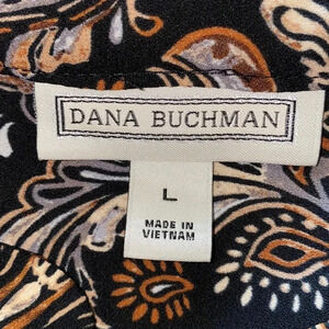 DANA BUCHMAN Paisley print hi low button cuff sleeves v-neck blouse NEW size L