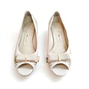 DANA BUCHMAN SHELLEY ICE PEEP TOE PUMP IN IVORY AND GOLD 7.5 M