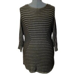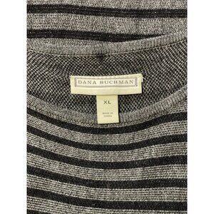 DANA BUCHMAN Woman's Striped Tunic Top Size XL Lightweight Stretch Grey Black