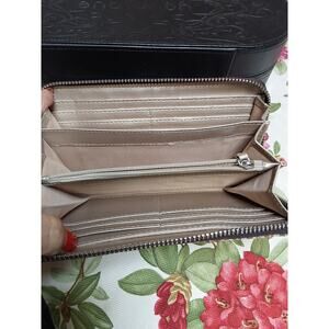 DANA BUCKMAN WOMEN'S WALLET BROWN BEIGE TAN LOGO ZIP AROUND RN130283