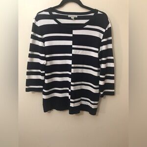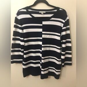 DANA Buchman Women Rayon Blend Crewneck Striped Print 3/4 Sleeves Sweater Top M