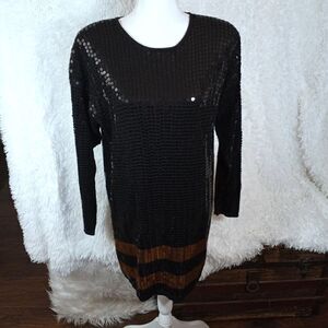 DANA BROOKE BLACK & COPPER SEQUIN DRESS SZ.M GUC.