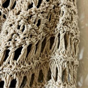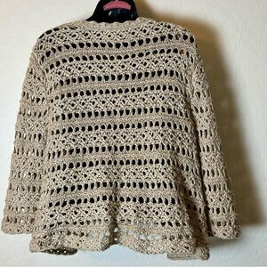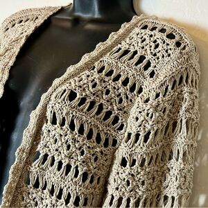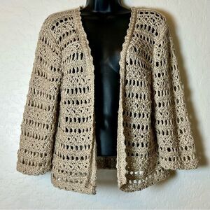 DANA BUCHMAN Tan Gold Shimmer Open Crochet open knit Open Cardigan 3/4 Sleeve XL