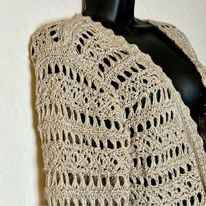 DANA BUCHMAN Tan Gold Shimmer open knit Open Cardigan 3/4 Sleeve Scalloped