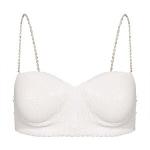 SAHRA TOP The Sahra Top is sequined bra top in snow white, with Swarovski crystal spaghetti straps, and underwire structure around cups for support