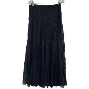 DANCE AMERICA Flowy Black Lace Sparkle Wide Leg Evening Party Pants - Black Lace Leaf Pattern w/ subtle sparkle; Smooth Stretch lined beneath; In very good condition and is Fresh & Clean and Ready-to-Wear - Has been hand laundered in Ecos non-scented soap and hung dry just prior to listing. Size L - Waist-30" / Rise-Mid / Inseam-30". Thigh measurement and Leg Opening shown in the photos.