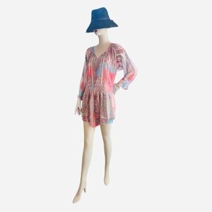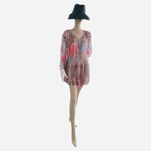 DANIEL BENJAMIN Women Blouse Sheer Rushed Tunic Dress Multicolored Stud Cover Up