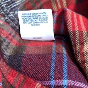 Soft lightweight cotton plaid flannel. Button down. Gets softer with each Wash. Elbow patches for lasting durability. Tan inner cuffs and inner collar.