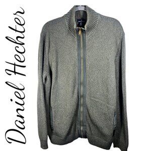 DANIEL HECHTER PARIS 100% Cotton Pine Green Mock Neck Zip Front Cardigan, XL