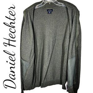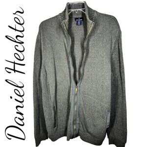 DANIEL HECHTER PARIS 100% Cotton Pine Green Mock Neck Zip Front Cardigan, Size XL