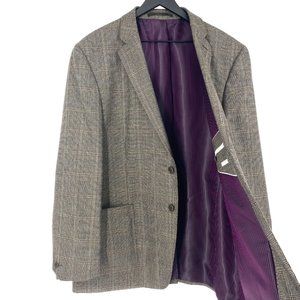 Daniel Hechter Paris 100% Wool Sports Jacket is an extraordinaire with the multi-blend patterns of checkered, houndstooth and windowpane. This sports jacket has stunning features with the soft fuchsia along the collar and color block with the underside of collar to the full royal purple interior lining. Style with cable knit sweater, solid/patterned slacks, and wing tip oxfords.