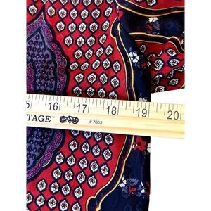 ✨ Effortless bohemian elegance! This stunning Daniel Rainn peasant blouse features an intricate paisley and geometric print in rich red, navy, and pink tones. The flowy, relaxed silhouette with button-front placket and roll-tab sleeves creates the perfect boho-chic look.