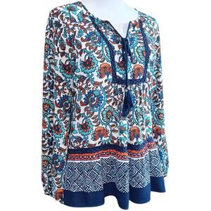 DANIEL RAINN Boho Peasant Top Blouse Flowy Small Colorful Travel Career V-Neck
