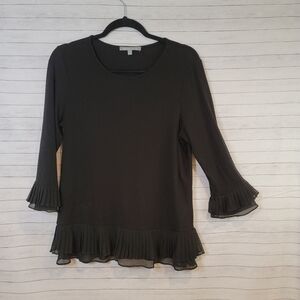 DANIEL RAINN FOR STITCH FIX, MIXED MEDIA 3/4 SLEEVE TOP, BLACK RUFFLE SHEER TRIM