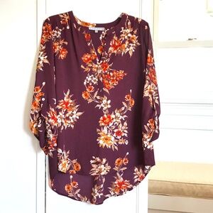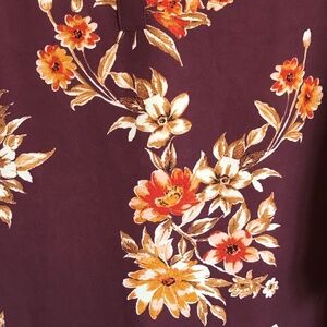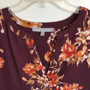 DANIEL RAINN Floral Autumn Blouse Split V-Neck Tunic Fall Top Women’s Size Large