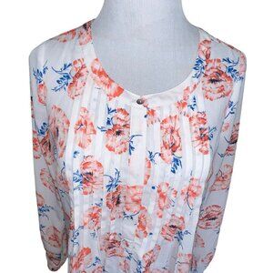 DANIEL RAINN WHITE PEACH FLORAL PLEATED BLOUSE WOMEN SMALL COLORFUL PREPPY BOHO