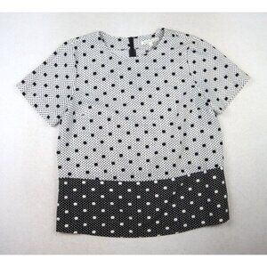 DANIEL RAINN - WOMEN'S BLACK & WHITE POLKA DOT PRINT SHORT SLEEVE TOP BLOUSE - L