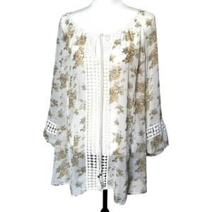 DANIEL RAINN Women's 2X Yellow Floral Sheer Tunic Cover Up Romantic Lace Tassels