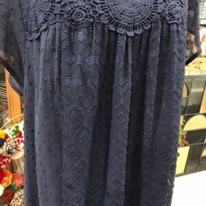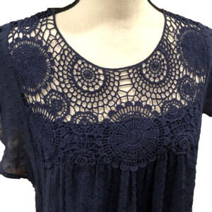 DANIEL Rainn Navy Flutter Sleeve Lace Babydoll Dress, Size Medium