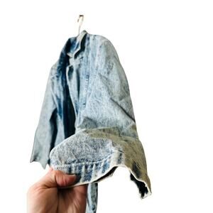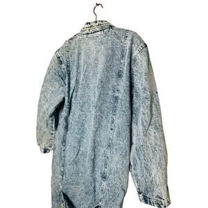 DANIEL Vintage Long Acid-Washed Denim Duster Rancher-Style Coat in size Medium is a statement piece that combines rugged charm with timeless appeal. Crafted from durable acid-washed denim, this coat features a rancher-inspired design with a longline silhouette that exudes vintage flair. Details like a button-up front, pointed collar, and classic chest and side pockets enhance its western aesthetic.