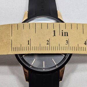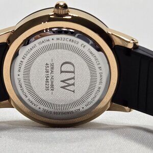Gently used Iconic Motion 32mm from Daniel Wellington featuring rose gold, black, stainless steel, stick hands, quartz movement, round face, rubber strap, deployant-clasp fastening and water resistance up to 100m/10 ATM.