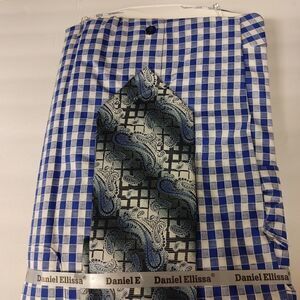 Daniel Ellissa blue and white dress shirt combo pack. Shirt, tie, pocket square, cuff link.