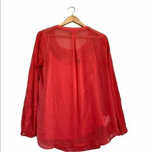 Daniel Rainn for A Pea In The Pod coral blouse. Button up with lace in the front and sheer in the back. Comes with matching unattached camisole to wear underneath!