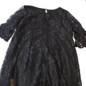 DANILLO BOUTIQUE WOMEN DRESS SIZE 2X LITTLE BLACK LACE SHEER BELLED SLEE…