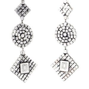 Antiqued sterling silver Dannijo Fetch drop earrings featuring crystal embellishments and clutch back closures.