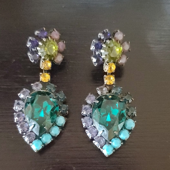 Multi-colored Swarovski crystals, looks fantastic with a cocktail dress or plain white tee and jeans! Pre loved, no flaws or loose stones. 2 inches long.