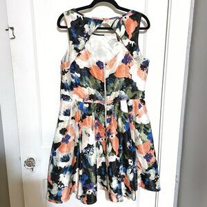 DANNY AND NICOLE Womens Size 14 Floral Sleeveless Fit And Flare Zip Back Dress.