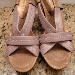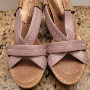 DANOLD J. PLINER LIGHT BRONZE JEMM SANDAL M WEDGE SIZE 9M ELASTICIZED BANDS PROVIDES EXTRA COMFORT AND A BETTER DIT IN THE CASUAL WEDGE DESIGN APPROXIMATE MEASUREMENTS HEEL 3"75 PLASFORM 1.75" IMPORTED MATERIALS TEXTILE LINING TEXTILE SOLE SYNTHETIC THIS ITEMS IS PRE-OWNED EXCELLENT CONDITION YOU MIGHT MISTAKE FOR NEW CHECK THE PICTURES