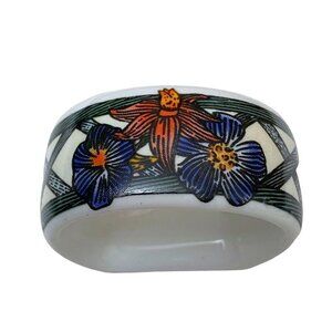 DANSK Napkin Rings Set of 4 Ceramic Nordic Garden Floral with Trellis Pattern