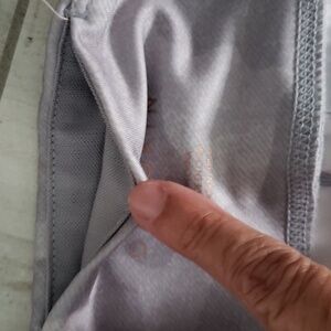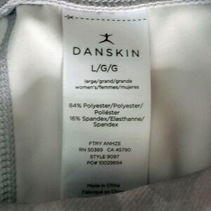 Super comfy in 84% poly and 16% spandex. Wider waistband stays comfortably in place. Phone pocket in back. Size large.
