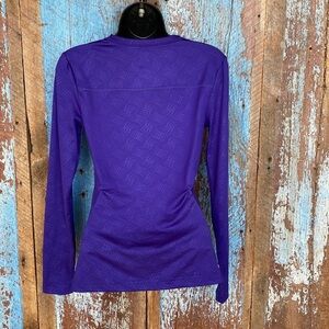 Here is a fun DANSKIN Now Dri-More TECH Blue Purple Long Sleeve Top size xsmall in good used condition.