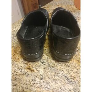 DANSKO BLACK LEATHER EMBOSSED TOOLED CLOGS SIZE 6.5 / 37. Condition is Pre-owned. Shipped with USPS Priority Mail.