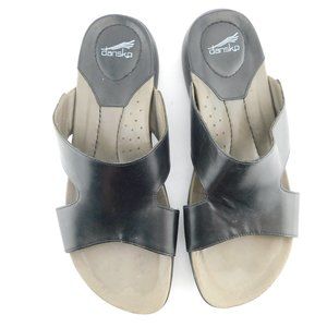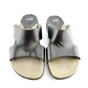 DANSKO Black Leather Open Toe Slip-on Slides Sandals 40
