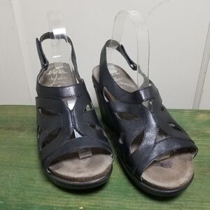 DANSKO Black Leather Size 40 4 Inch Wedge Sandal