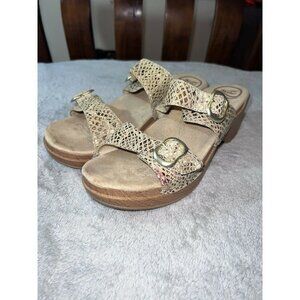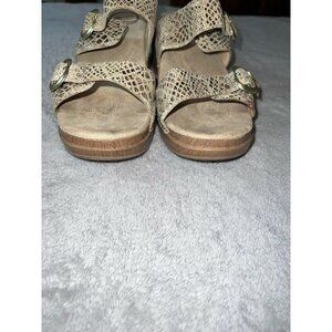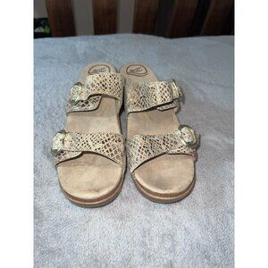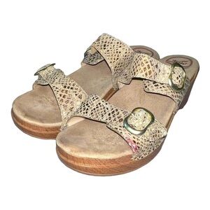 DANSKO Brown Snakeskin Print Leather Slip On Platform Sandals