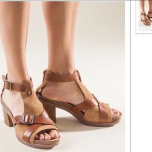 DANSKO Dominique Teal Brown T-Strap Open Toe Block Heel | EU 37