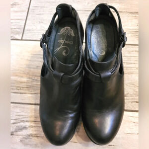 DANSKO Franka black leather wedge ankle strap studs heeled clogs casual W 10.5