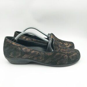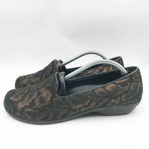 DANSKO Olivia Bronze Black Snake Print Leather Slip On Loafers Flats Womens 8