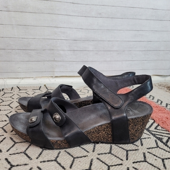 DANSKO SAVANNAH WEDGE SANDAL IN BLACK, SZ 41