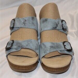 DANSKO SOPHIA LEATHER DOUBLE STRAP SANDALS DUSTY BLUE EU 41 10.5-11