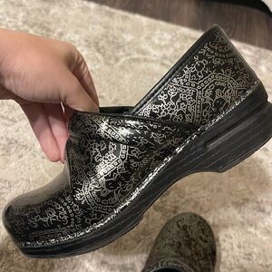 DANSKO Silver Black Clogs Size 37 - 7 Pattern Printed Hospital Nursing