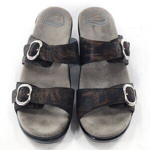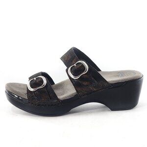 DANSKO Sophie Metallic Python 2-Strap Sandal Slide Platform Arch Support Comfort Shoes Block Heel Open Toe Buckle Detail
